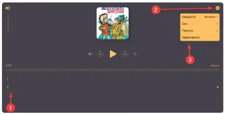 Щоб завантажити аудіокнигу на Ваш смартфон, планшет, комп'ютер, в плеєрі є позначка, яка нагадує шестерню: